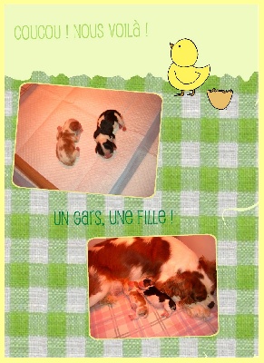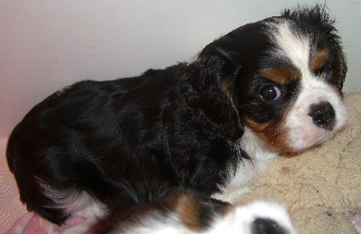 Les bébés de DEDICACE sont arrivés le 16 AOUT 2010. Il y a un mâle blenheim et une femelle tricolore. Laissons les pousser un peu.